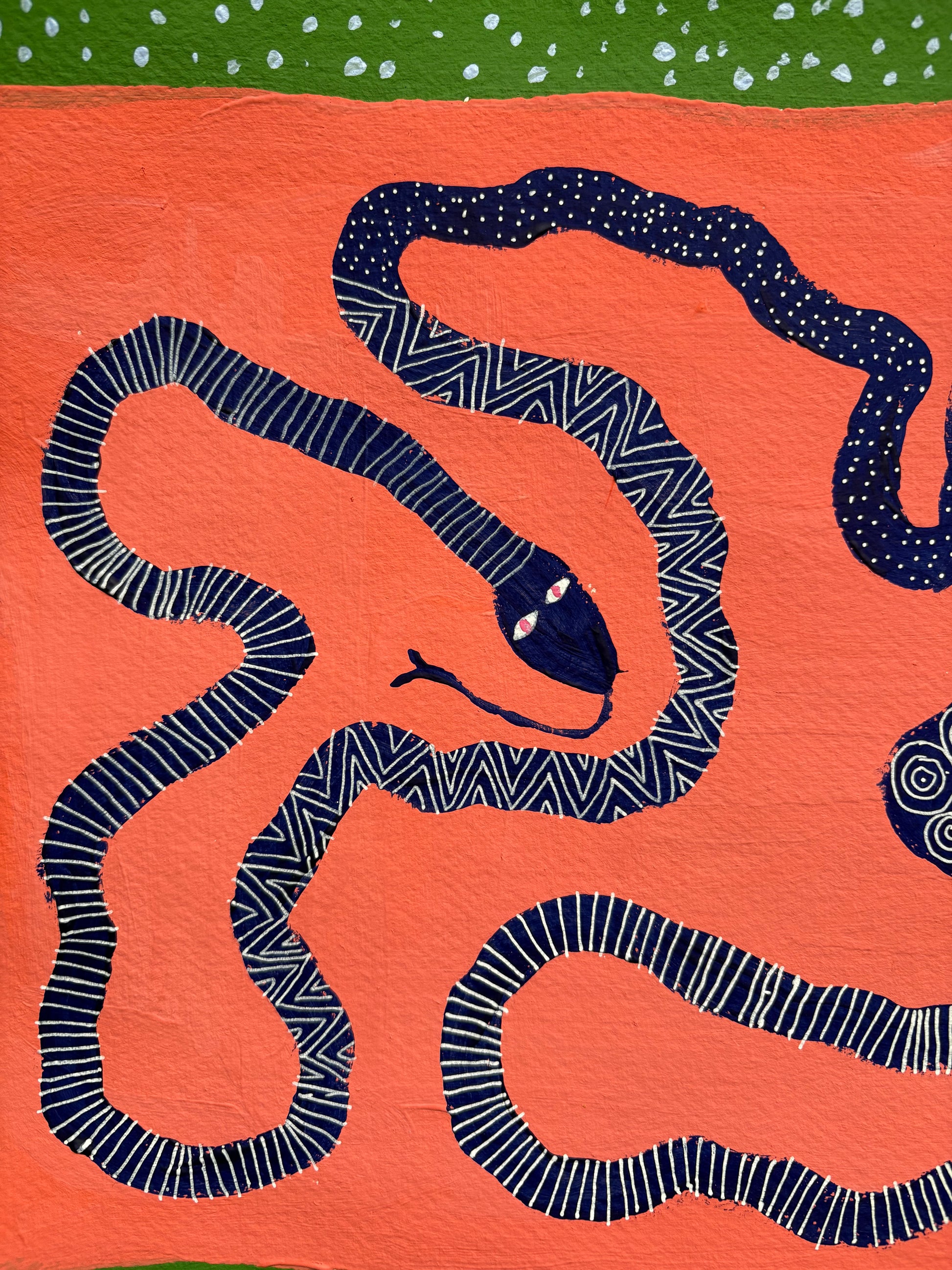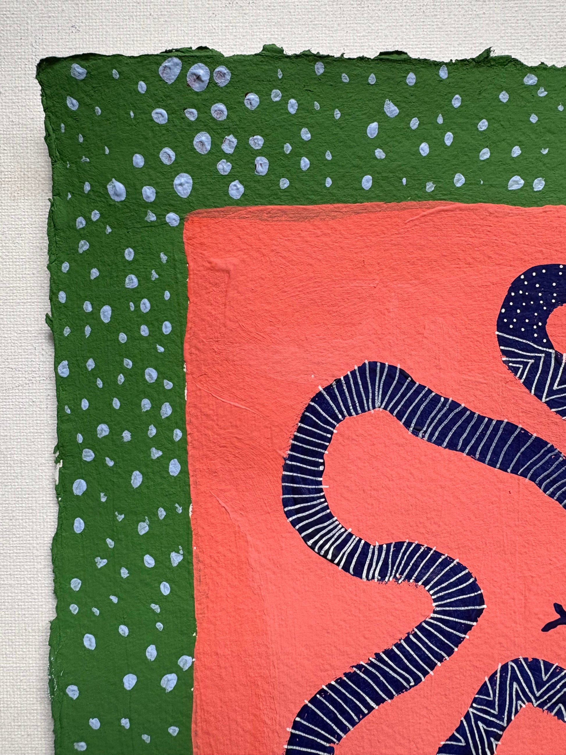 Acrylic painting on textured, handmade paper.