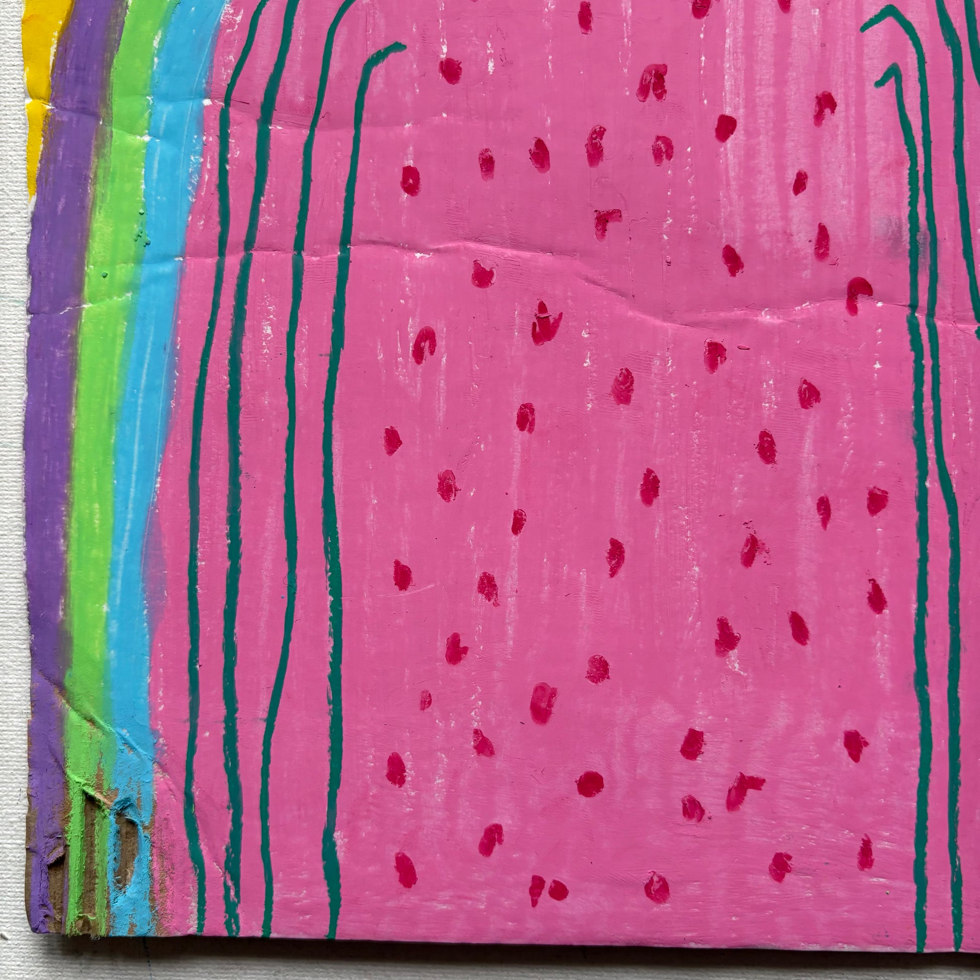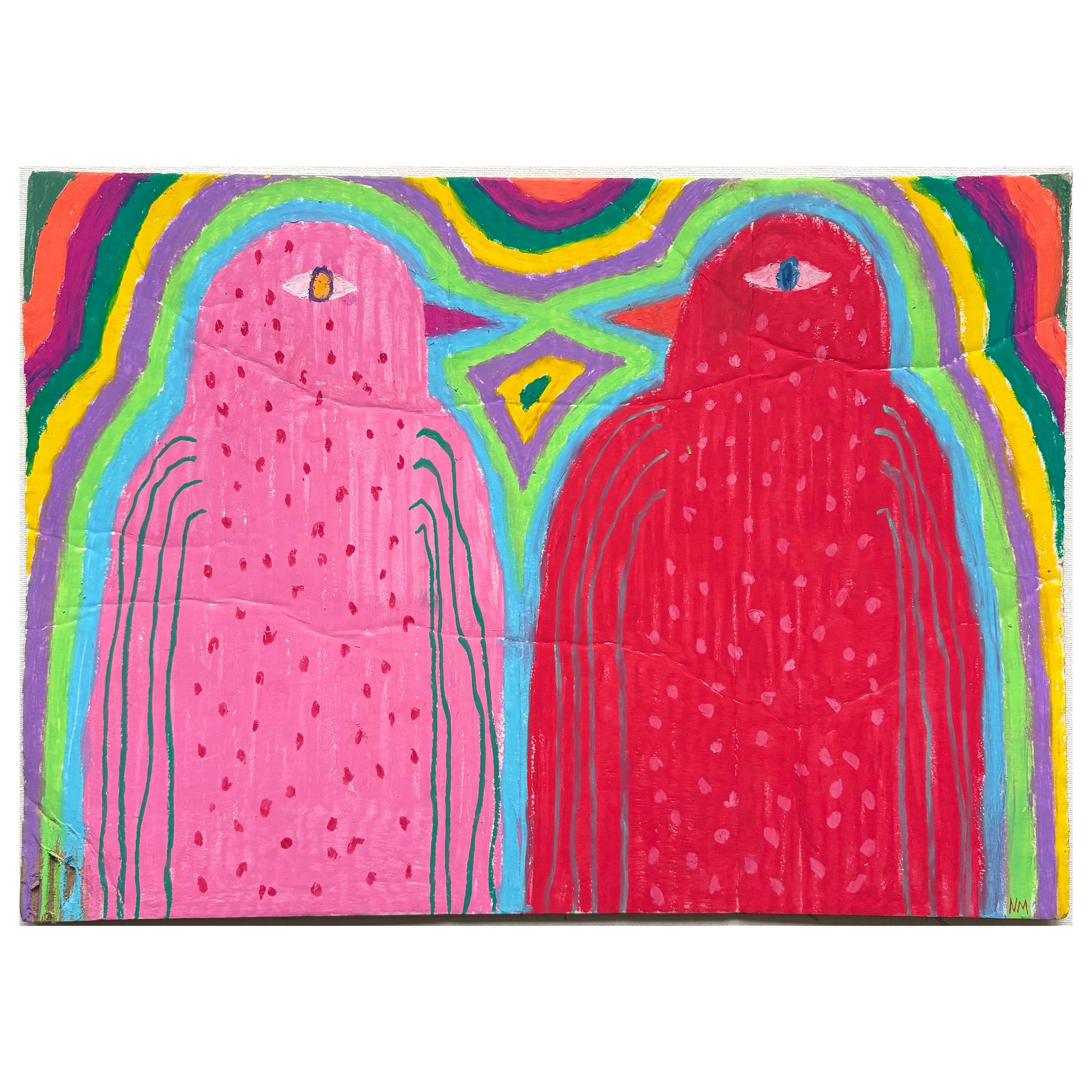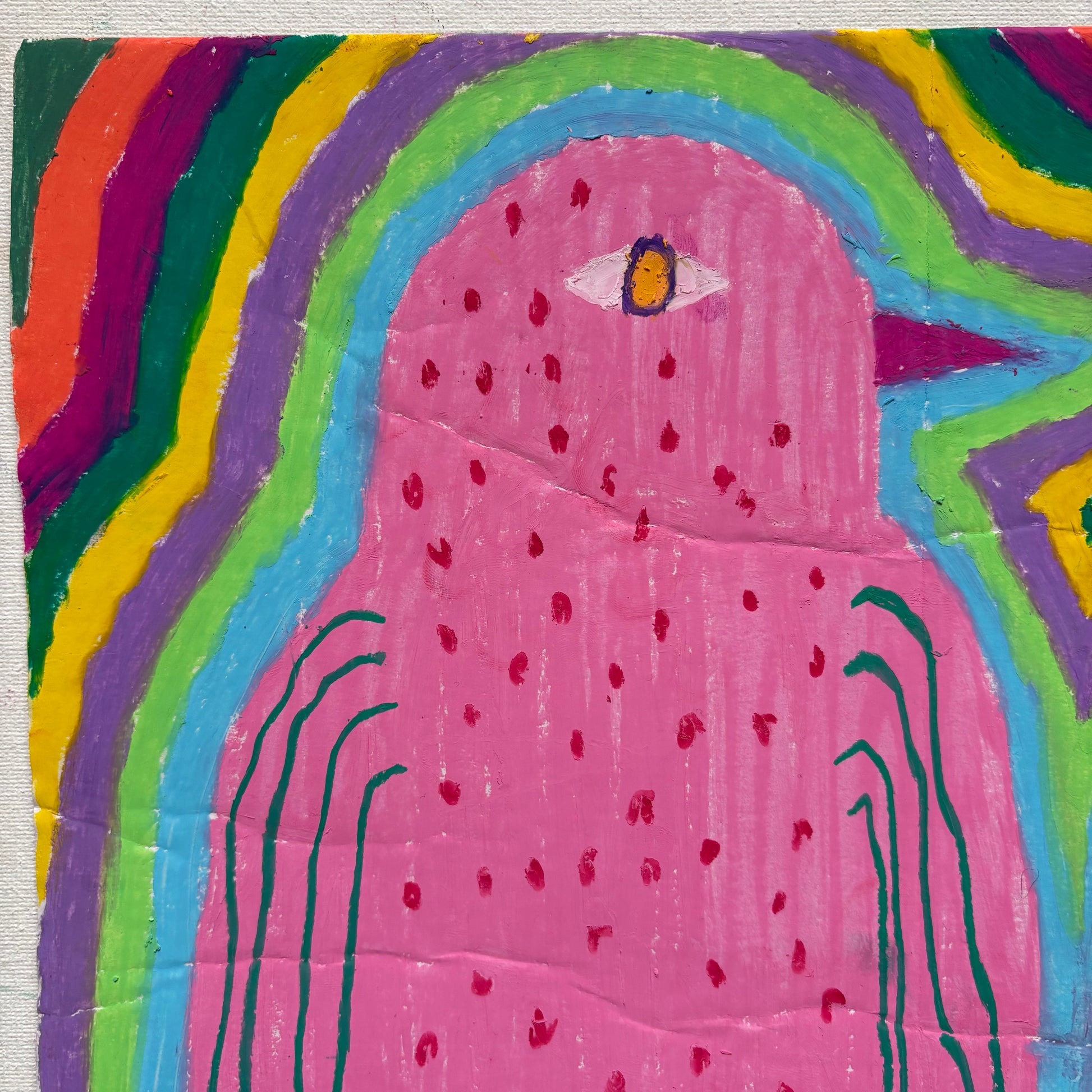 Oil pastels on cardboard.