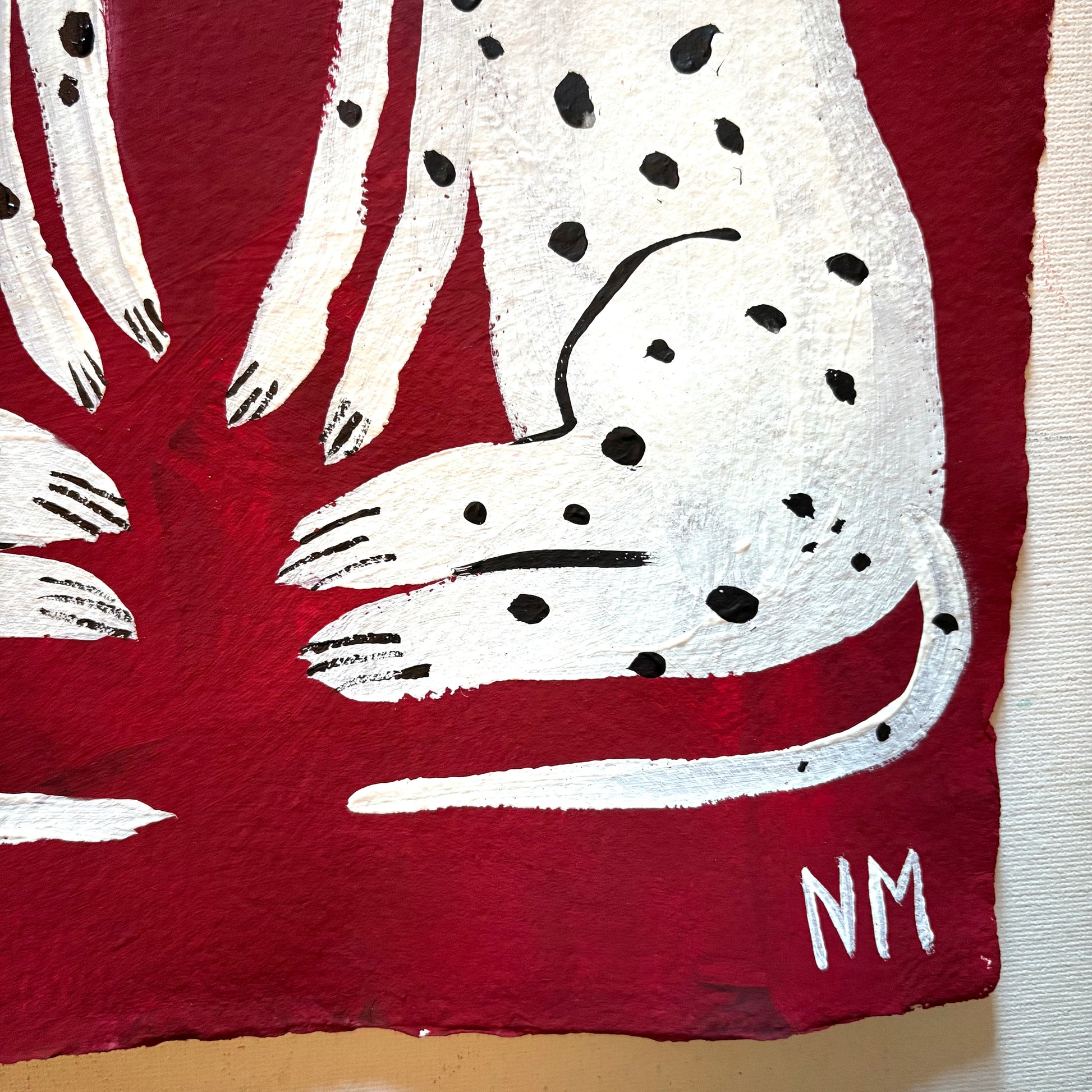 Acrylic painting on textured, handmade paper.