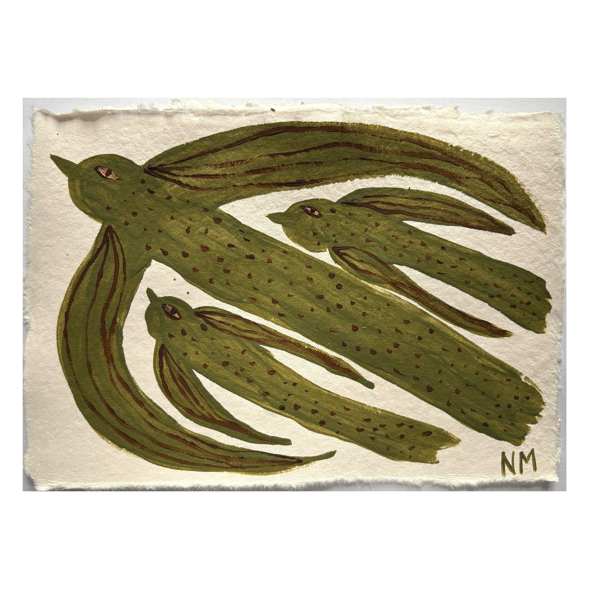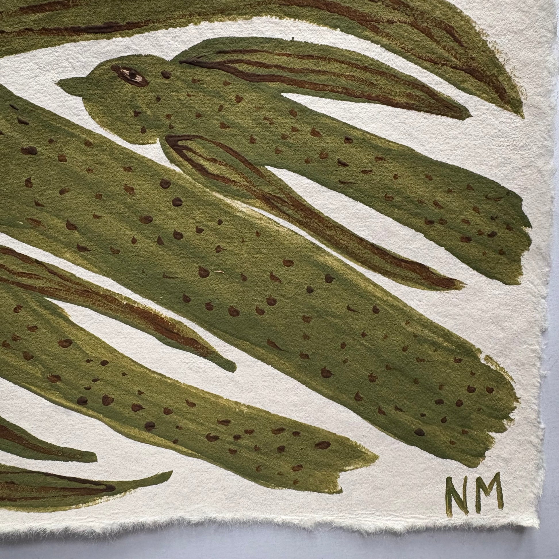 Painted in bancha green, Farrow & Ball. On textured, handmade paper.
