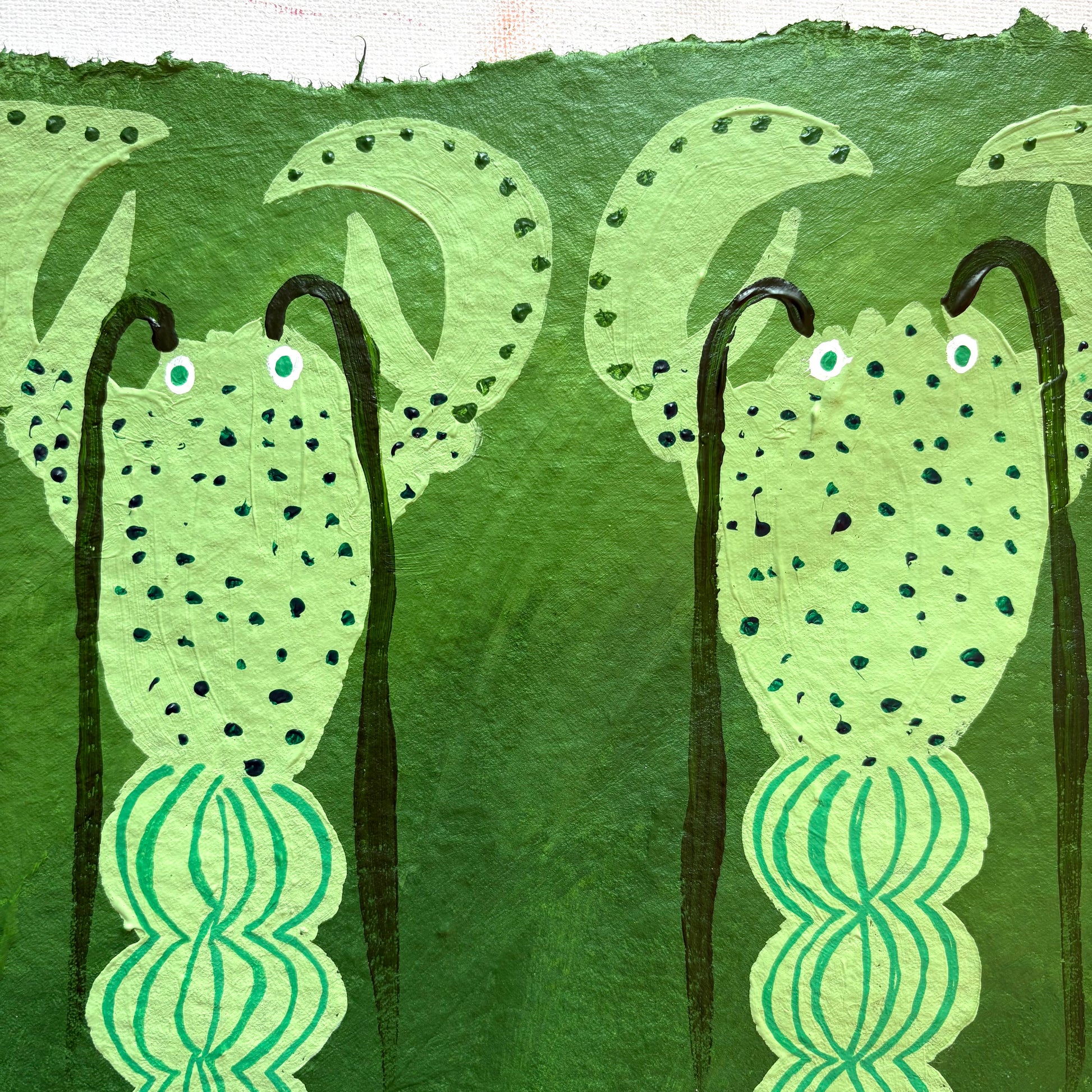 Acrylic painting on textured, handmade paper.