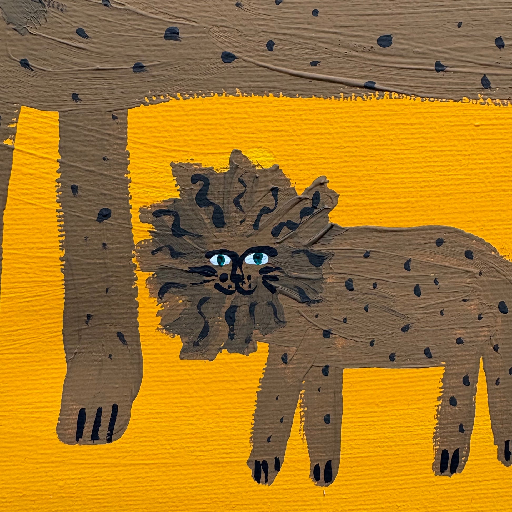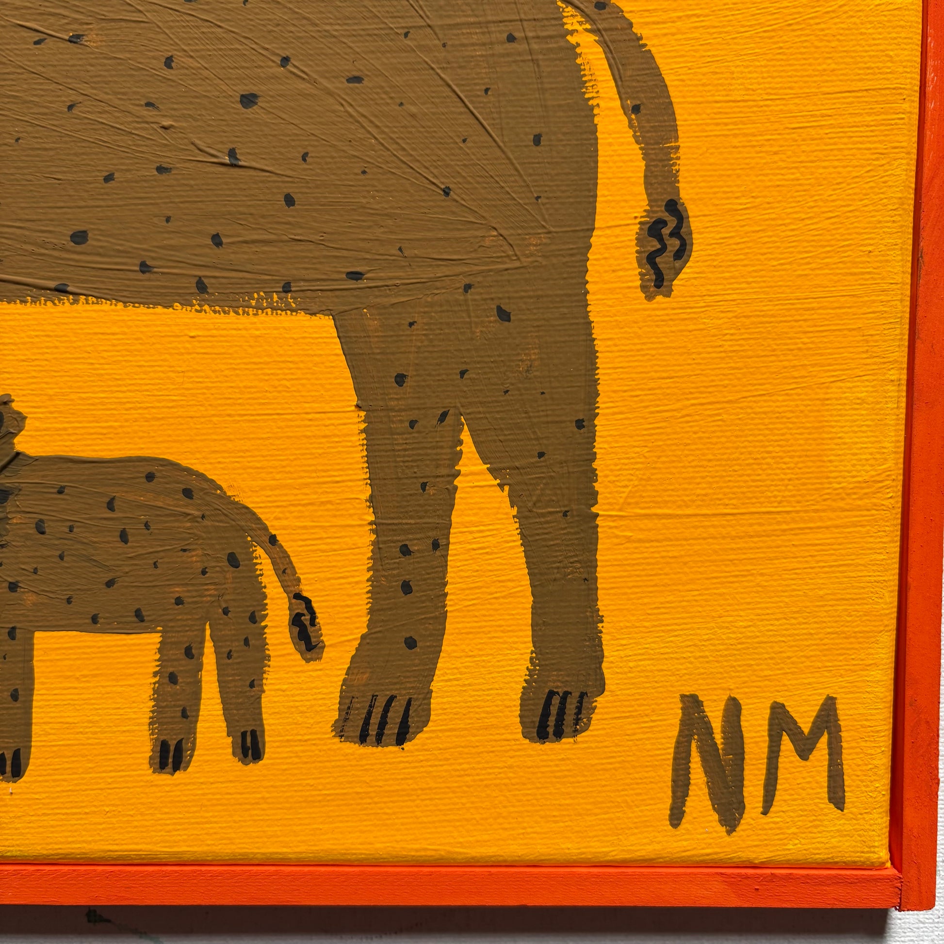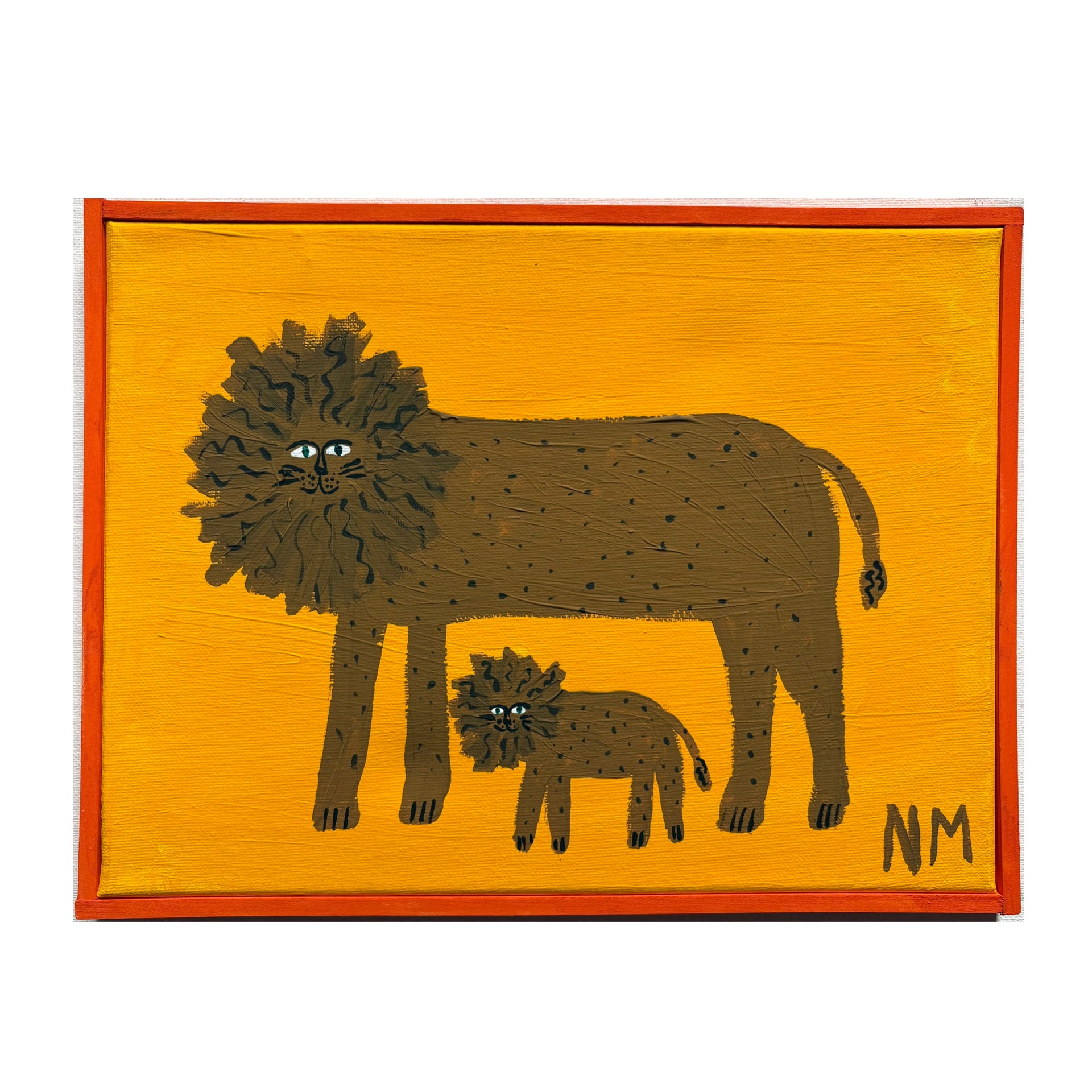 Acrylic paint on canvas. Simply framed in wood, painted orange.