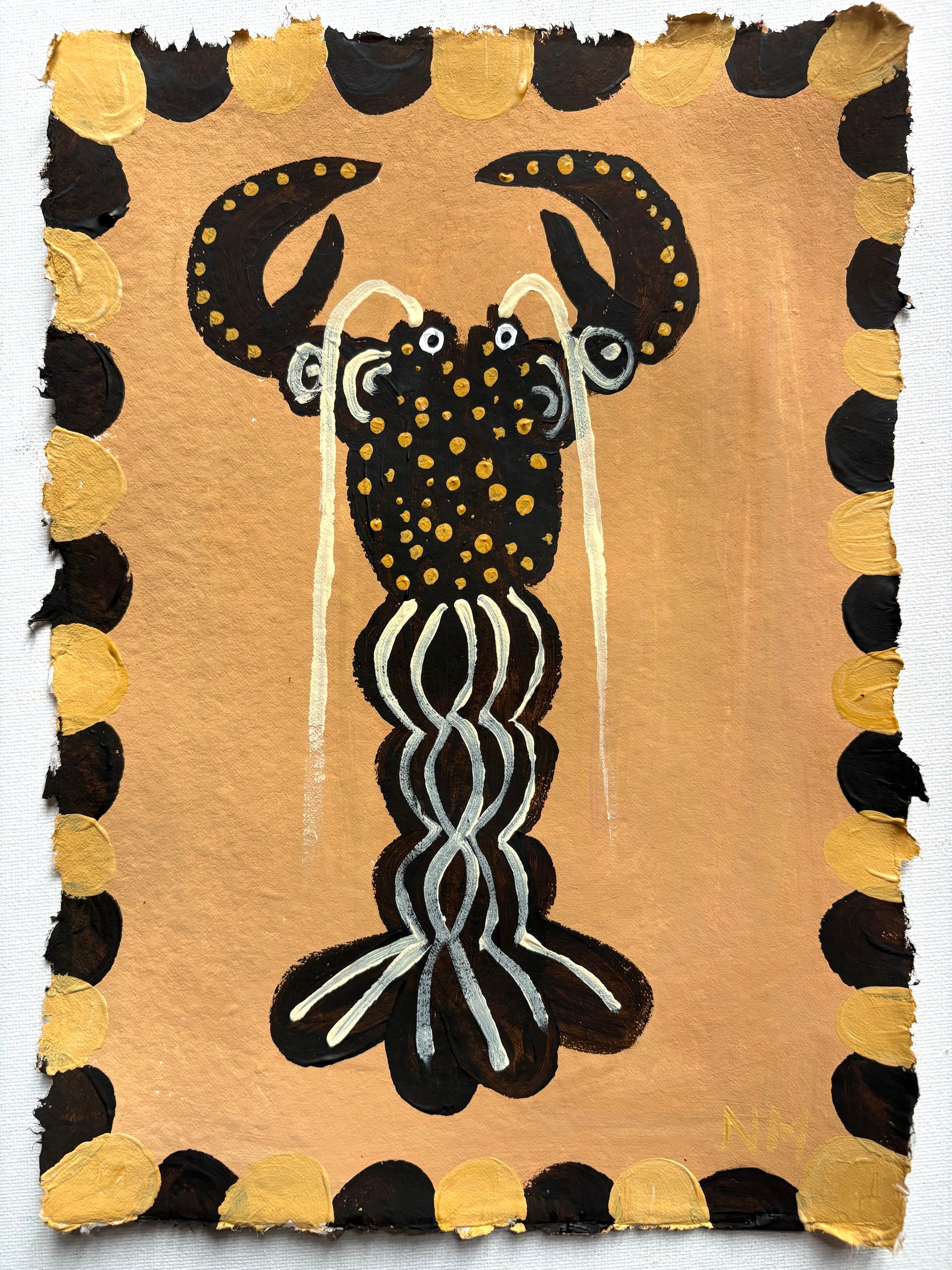 Acrylic painting on textured, handmade paper.