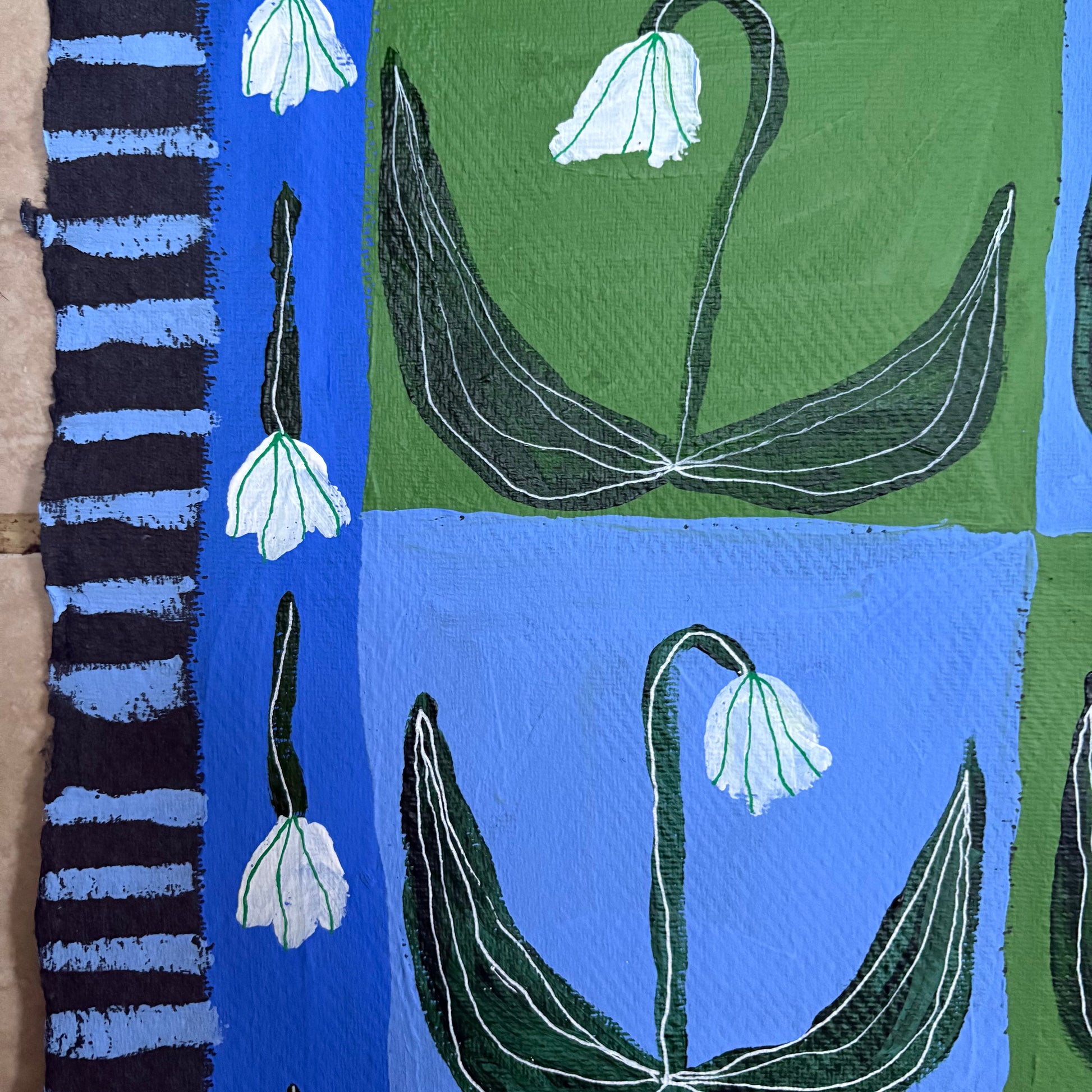 Acrylic painting on beautiful handmade black rag paper. Rough 210 gsm.